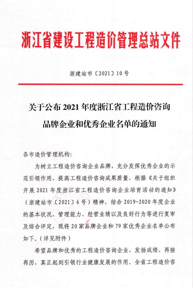 2021年度浙江省工程造价咨询优秀开云网页版登录入口