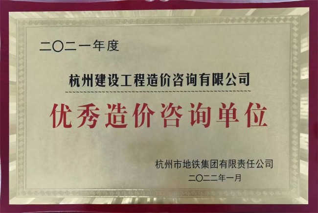 2021年度杭州市地铁集团优秀造价咨询单位