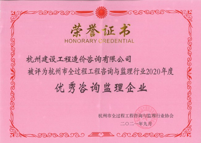 杭州市全过程工程咨询与监理行业2020年度优秀咨询监理开云网页版登录入口