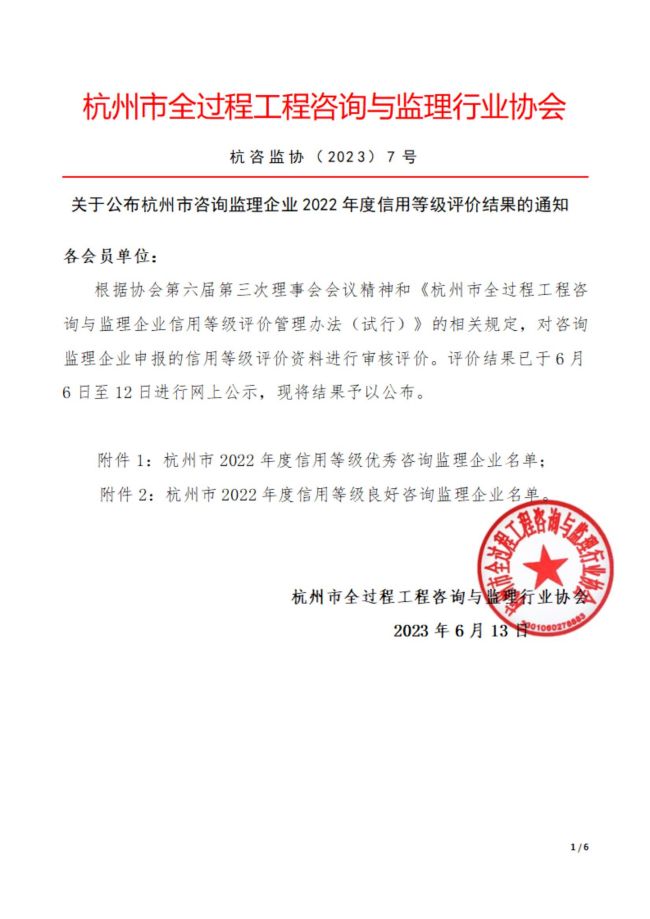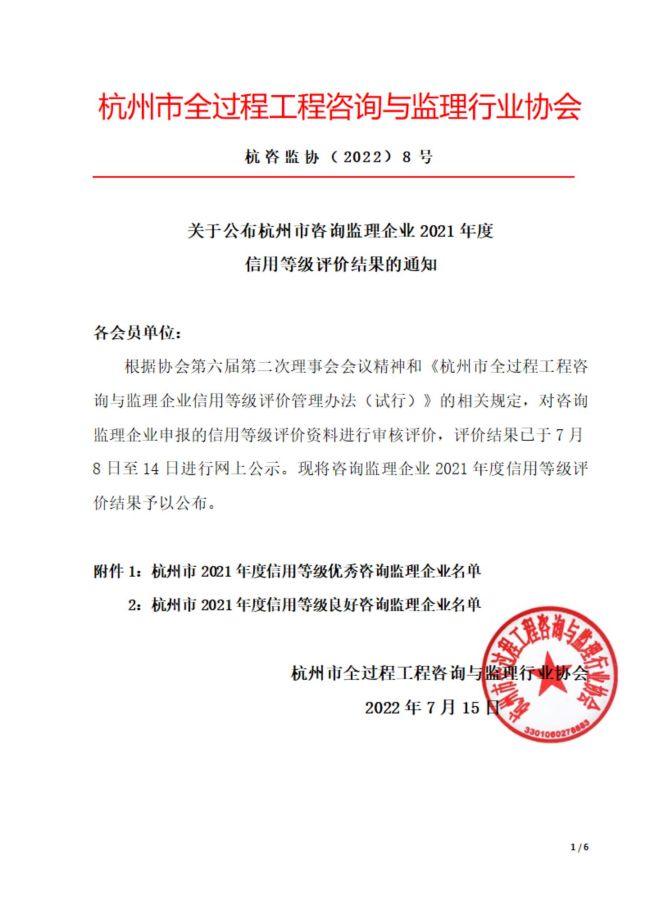 杭州市2022年度信用等级优秀咨询监理开云网页版登录入口