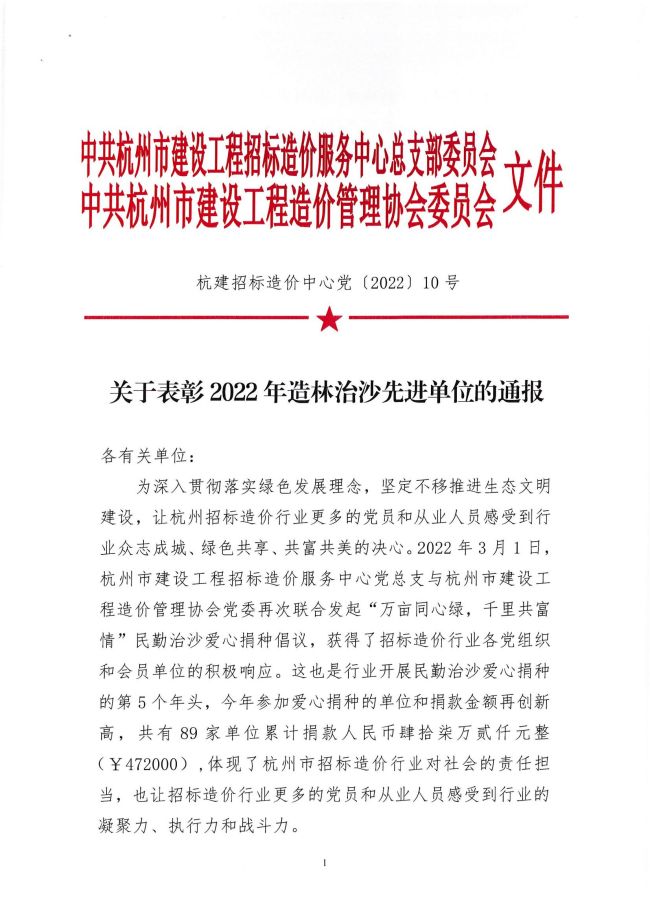 杭州市建设工程招标造价行业服务保障亚运项目“三赛”活动先进集体