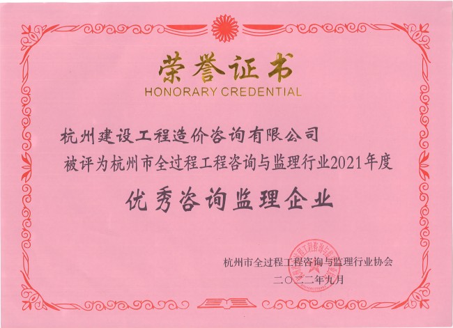 杭州市全过程工程咨询与监理行业2021年度优秀咨询监理开云网页版登录入口