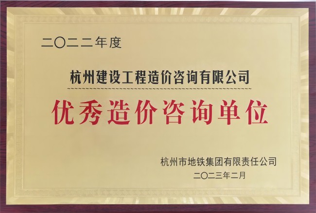 2022年度杭州市地铁集团优秀造价咨询单位