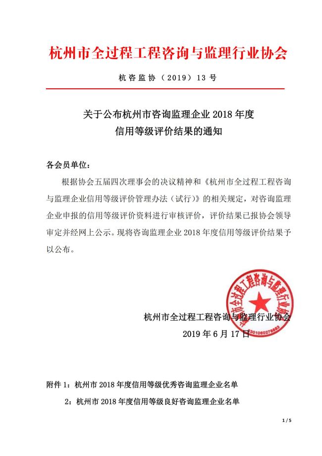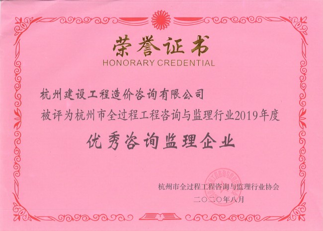 2019年度杭州市信用等级优秀咨询监理开云网页版登录入口