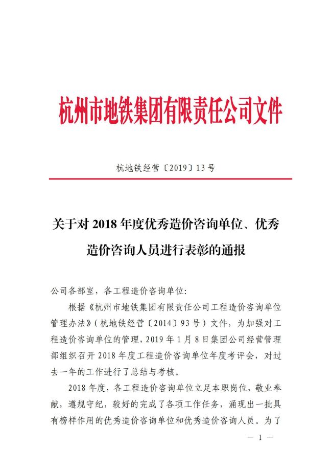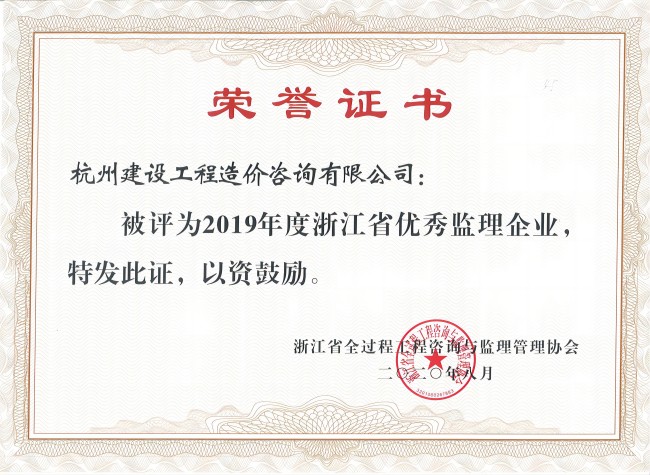 杭州市全过程工程咨询与监理行业2019年度优秀咨询监理开云网页版登录入口