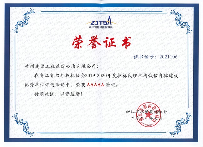 2019-2020年度招标代理机构诚信自律建设AAAAA优秀单位