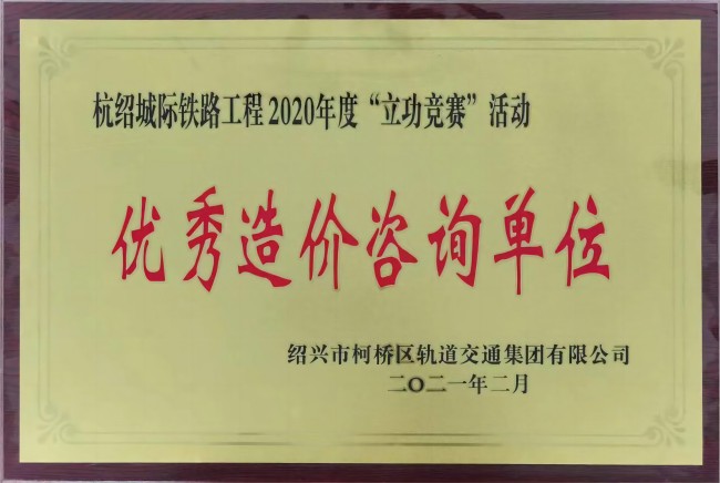 杭绍城际铁路工程2020年度“立功竞赛”活动优秀造价咨询单位