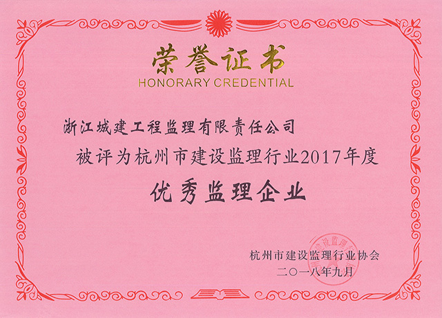 2017年杭州市建设监理行业优秀监理开云网页版登录入口