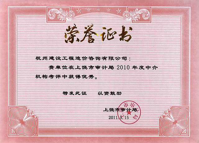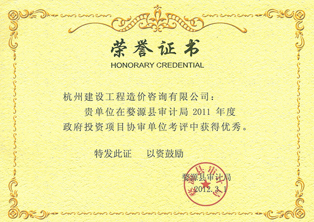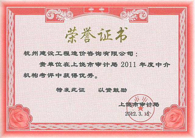 2011年婺源县审计局政府投资项目协审单位考评优秀