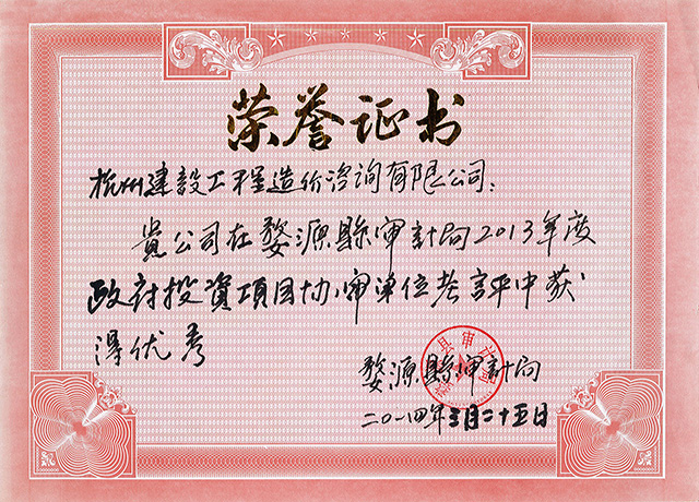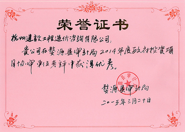 2014年婺源县审计局政府投资项目协审单位考评优秀