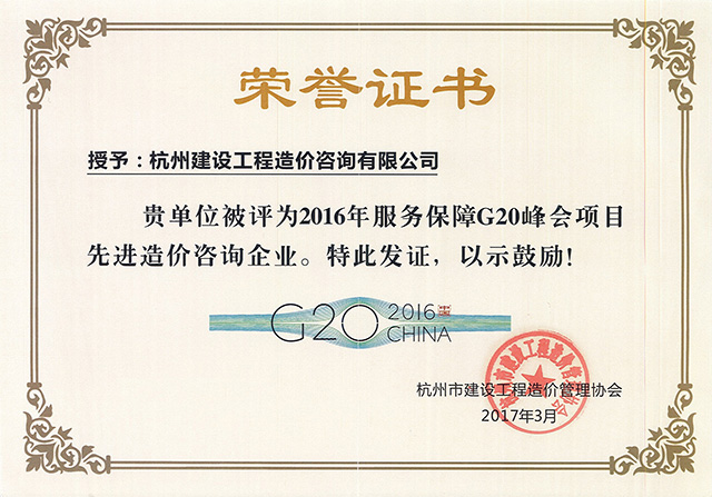 2016年服务保障G20峰会项目先进造价咨询开云网页版登录入口