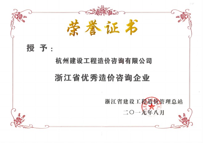 2019年浙江省优秀造价咨询开云网页版登录入口
