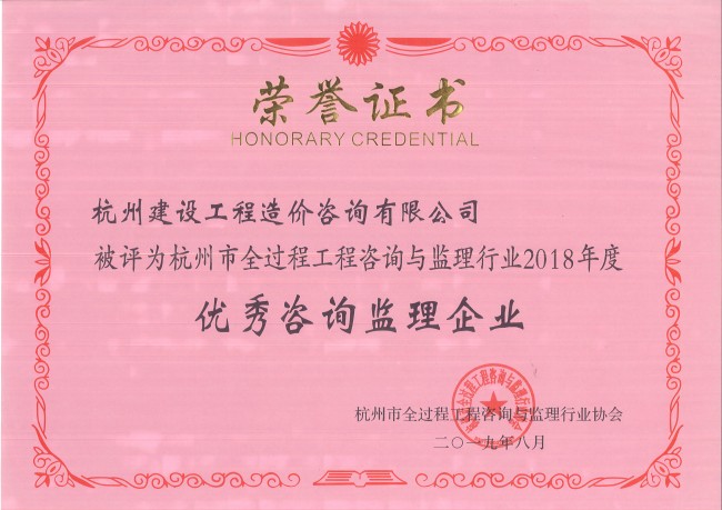 2018年度杭州市全过程工程咨询与监理行业优秀咨询监理开云网页版登录入口