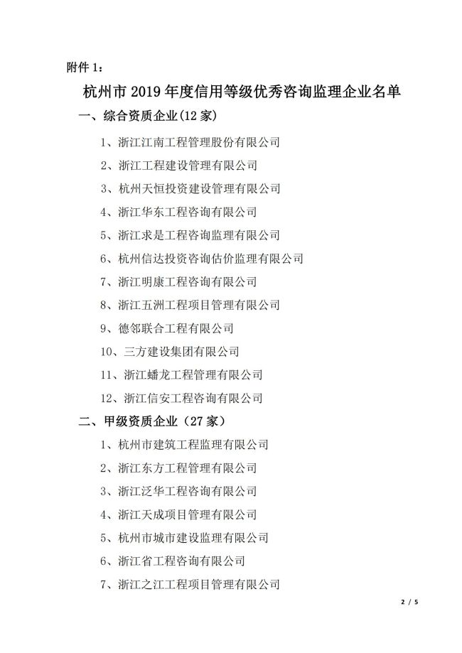 2019年度杭州市信用等级优秀咨询监理开云网页版登录入口