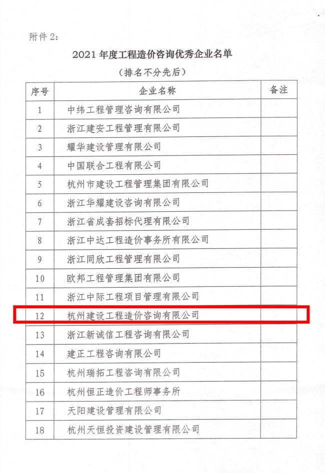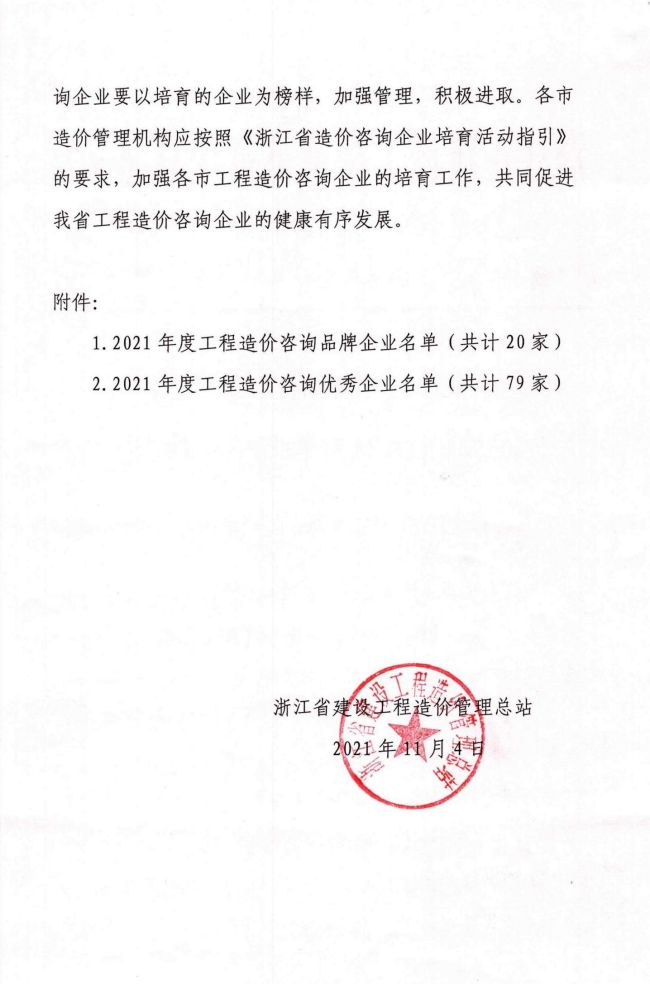 2021年度浙江省工程造价咨询优秀开云网页版登录入口