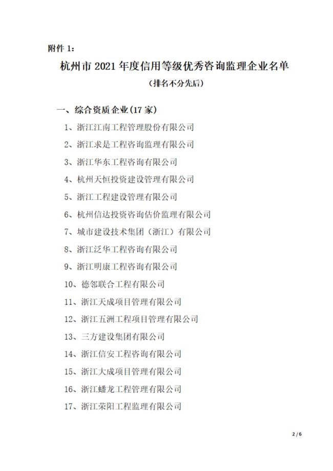 杭州市2021年度信用等级优秀咨询监理开云网页版登录入口