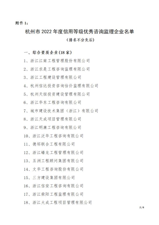 杭州市2022年度信用等级优秀咨询监理开云网页版登录入口